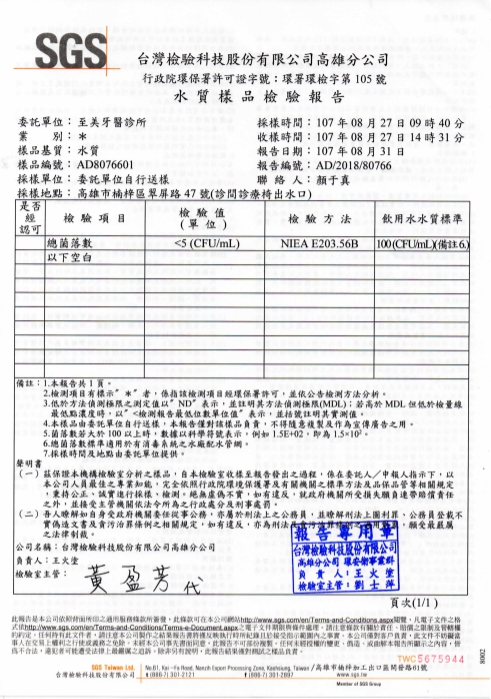 2018年8月1日我們來到高雄楠梓至美牙醫診所裝置管路消毒系統。